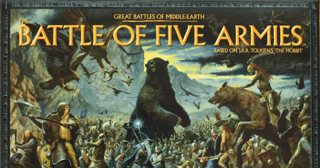 Z ostrożności wobec „filmowego” Hobbita Rick przygotował najpierw „Battle of the Five Armies” – wariant na bazie Warmastera z dwiema plastikowymi armiami i terenem w pudełku. To był jego wymarzony format „dużej bitwy” w Śródziemiu, choć sprzedaż wykoleiły błędy ekspozycyjne i dystrybucyjne. Do wywiadu z Alesio, jeszcze wrócimy 🙂