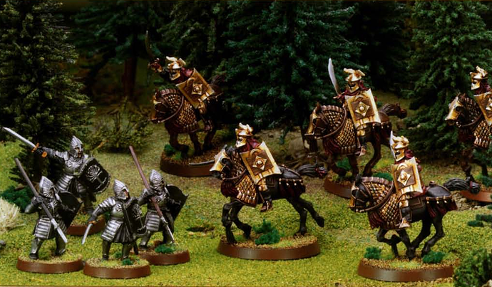 Przez lata estetyka i lista jednostek Easterlingów urosła z „ciężkiej piechoty i kataphraktów” do pełnego kulturowego pakietu. Największy skok przyszedł wraz z Defence of the North (2022): pojawił się Smoczy Cesarz Rhûnu (na palankinie), Black Dragons jako elitarna formacja, Akolici Kultu Smoka, a także para nowych bohaterów – Rutabi i Brórgîr (mag). To właśnie wtedy frakcja dostała świeże reguły i legendarny legion „Host of the Dragon Emperor”. Wcześniej Easterlingowie byli prowadzeni do walki tylko jako ciężka piechota i kataphrakty przez Amdura lub kapitanów.