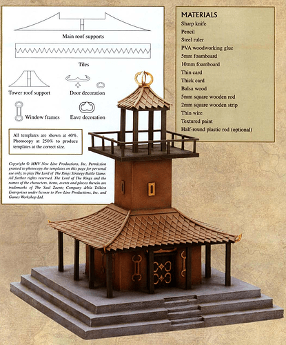 - Teren: sięgnijcie do szablonów z A Shadow in the East – wieża i świątynia w kartonie/piance to wciąż szybki sukces hobbystyczny i klimat na stole.