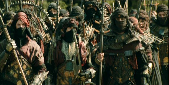 Na koniec mamy dla was filmowe ciekawostki. Easterlingowie w filmie maszerują ze sztandarem Haradu: