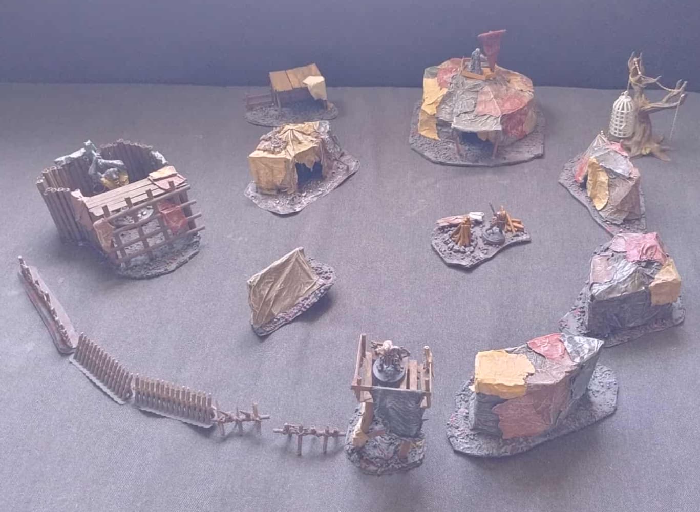 Kontynuując sukces pierwszego projektu terenowego - orkowego namiotu robionego według instrukcji z gazetki Deagostini (w wątku opisuję proces robienia namiotu Orczy Namiot - #9 przez zendurix ) rozpocząłem projekt pełnego zestawu terenów na w stylu orkowego obozu.