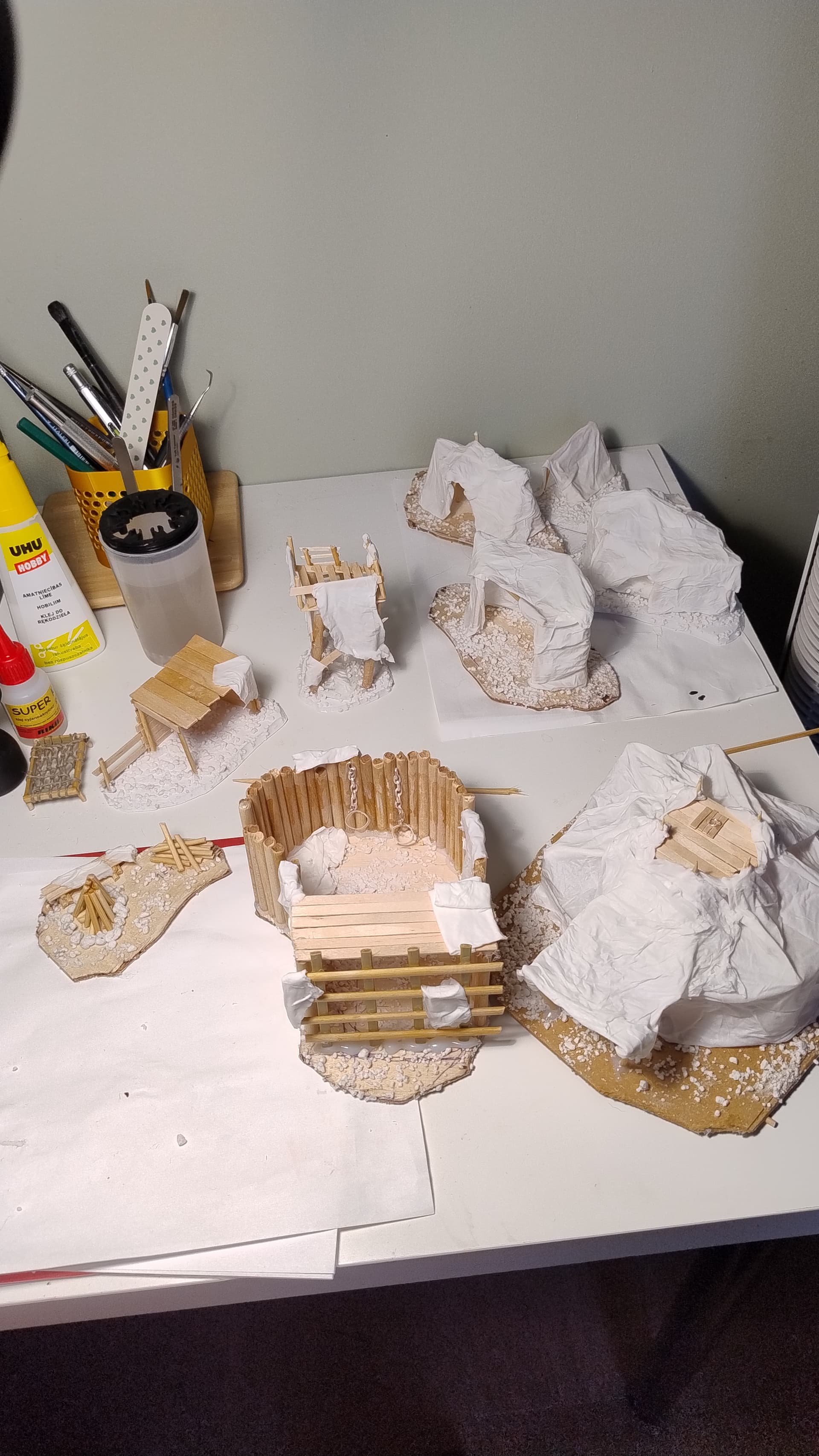 Doszło dużo mniejszych i większych namiotów, każdy unikalny, duży namiot szefa z platformą , klatka trola, wieżyczka, jakaś szopa i ognisko do kiełbasek